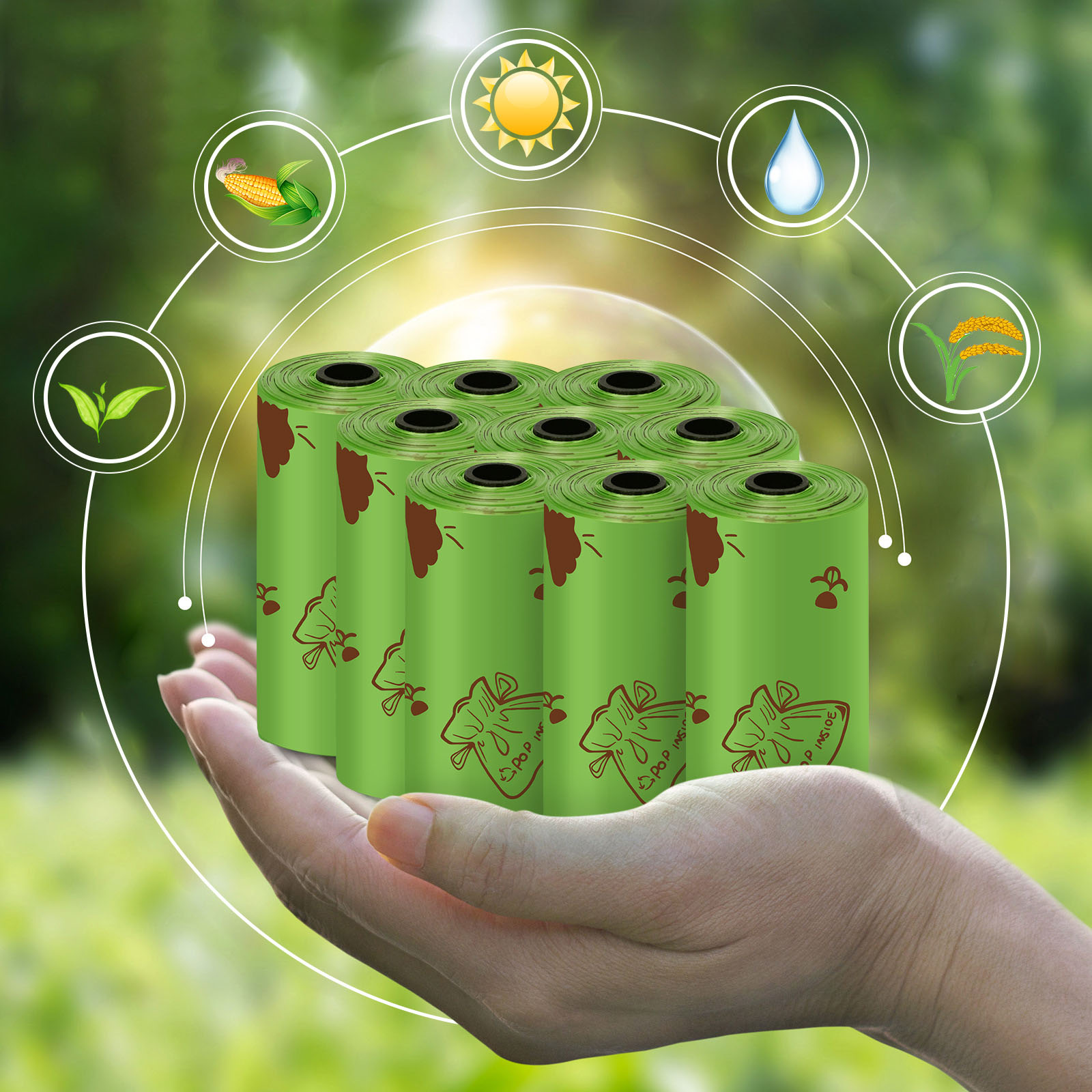 Biodegradable Pet Dog Cat Poop Bag Roll with Dispenser